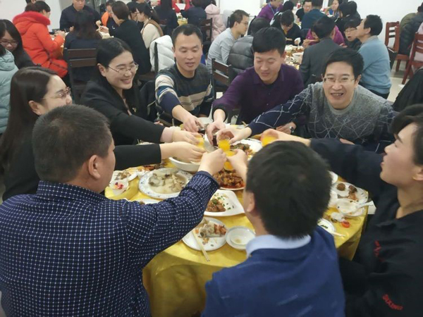 同事,職工朋友們相互敬酒,場(chǎng)面堪稱宏偉壯觀啊