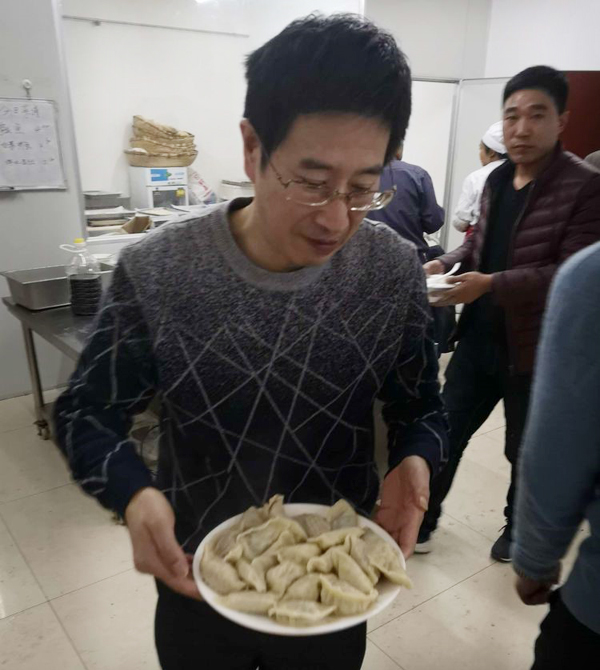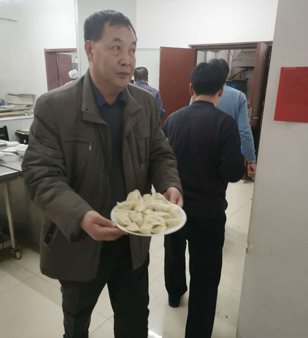 張永華總,大化來(lái)的高級(jí)高管,雖然膝蓋疼痛,但是為咱們員工端起餃子來(lái),活力十足,一下年輕20歲。