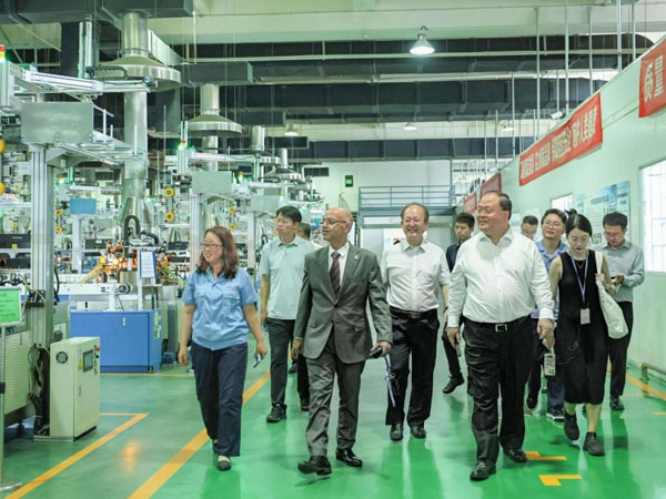 深入生產(chǎn)一線,見證四星魅力 隨后,法赫米先生一行深入公司生產(chǎn)現(xiàn)場,實(shí)地參觀了預(yù)灌封注射器生產(chǎn)線、西林瓶生產(chǎn)線及玻管生產(chǎn)線。整潔有序的生產(chǎn)環(huán)境、高度智能化的生產(chǎn)設(shè)備,無不彰顯著四星玻璃的現(xiàn)代化生產(chǎn)能力和科技實(shí)力。法赫米先生對四星玻璃的智能化水平給予高度評價(jià),并對產(chǎn)品質(zhì)量表示了充分信心。